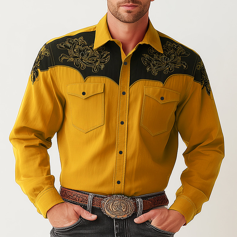 Men's Gradient Color Shirt Western Shirt Cowboy Shirt Long Sleeve Vintage Retro Outdoor Casual WorkWear Spring Fall Turndown Front Two Pockets Linen Like Shirt Button Up Shirts Brown