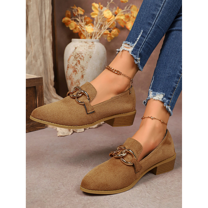Leopard Print Faux Suede Loafers for Women – Chic Slip-On Shoes with Gold Chain Detail and Block Heel, Stylish Casual Footwear