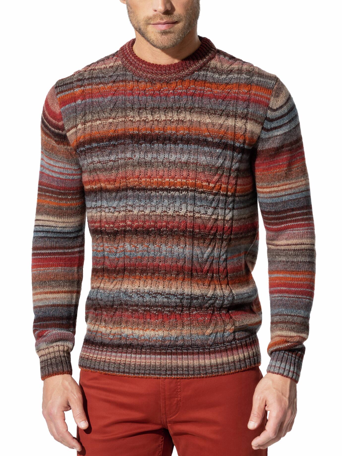 Walbusch Herren Zopf-Pullover Einzelstück Orange mehrfarbig