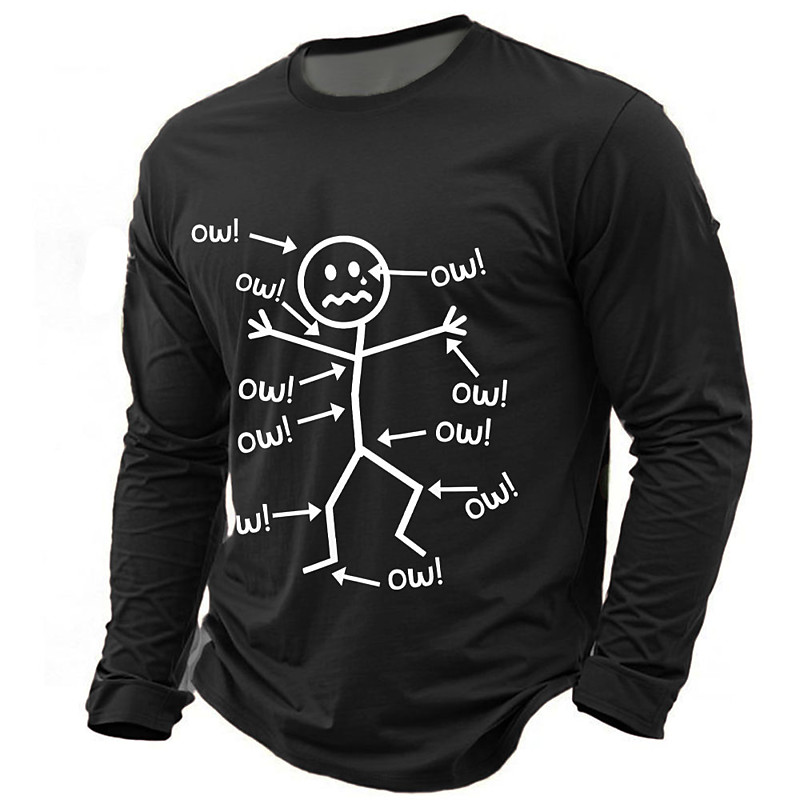 Men's Long Sleeve Graphic T-Shirt with Funny 'Ow!' Aches Pains Design