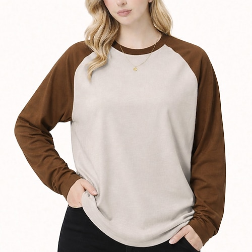 Per donna Taglia grande Maglietta T-shirt Raglan 100% cotone Patchwork Blocco di colore Vintage Elegante Casual Manica Lunga Girocollo Top lunghi Quotidiano Uscire Marrone e nero Bianco e nero Marrone