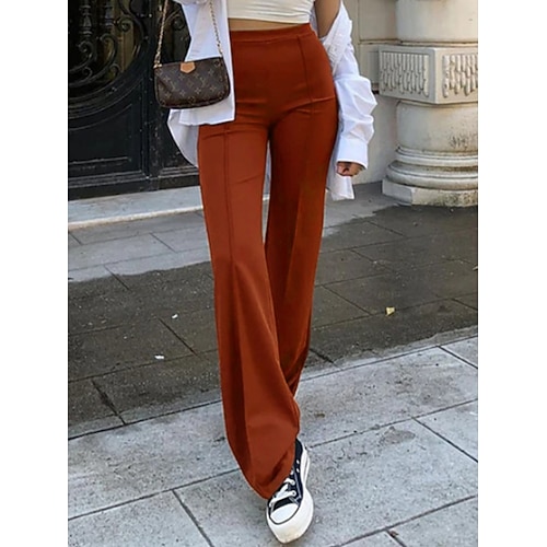 Per donna Gamba larga Pantaloni Pantaloni a Zampa Pantaloni casual Vacanza Moda Streetwear Lungo Vita Alta Semplice Elastico in vita Confortevole Micro-elastico Quotidiano Vacanza Streetwear Nero