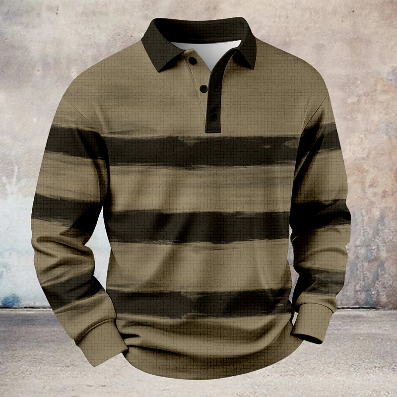 Men's Striped Waffle Polo Shirts Rugby Polo Long Sleeve Polo Shirts Collared Shirts Casual Athleisure Daily Wear Buttons Spring Fall Winter Blue White Light Purple