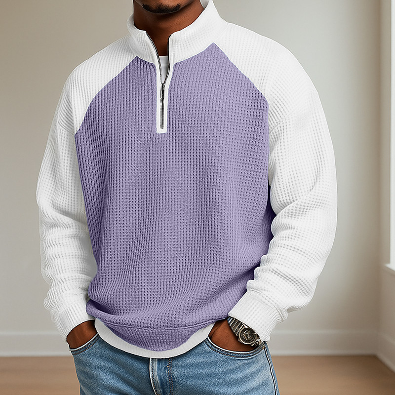 Men's Waffle Polo Shirts Textured Casual Holiday Lapel Long Sleeve Cool Plain Classic Style Fall Spring Fall All Seasons Regular Fit White Light Green Light Blue Red Navy Blue Purple Waffle Polo