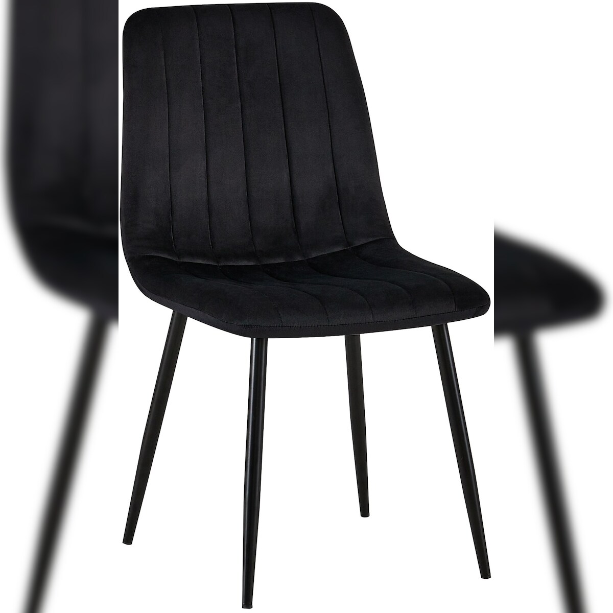DELUKE® Stuhl LENZ Samt - 88x45x53cm, schwarz, Metall Gestell Stühle Esszimmerstühle Stuhl Esszimmer Esstisch Stühle Küchenstuhl
