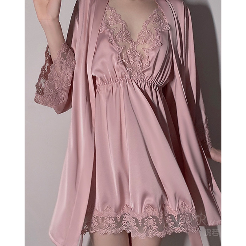 Women's Robe Nightgown Pajama Set Casual Soft Satin Pure Color Lace Dress Daily Home Bed Long Sleeve Straps Black White Pink Wine Brown Summer Regular Fit
