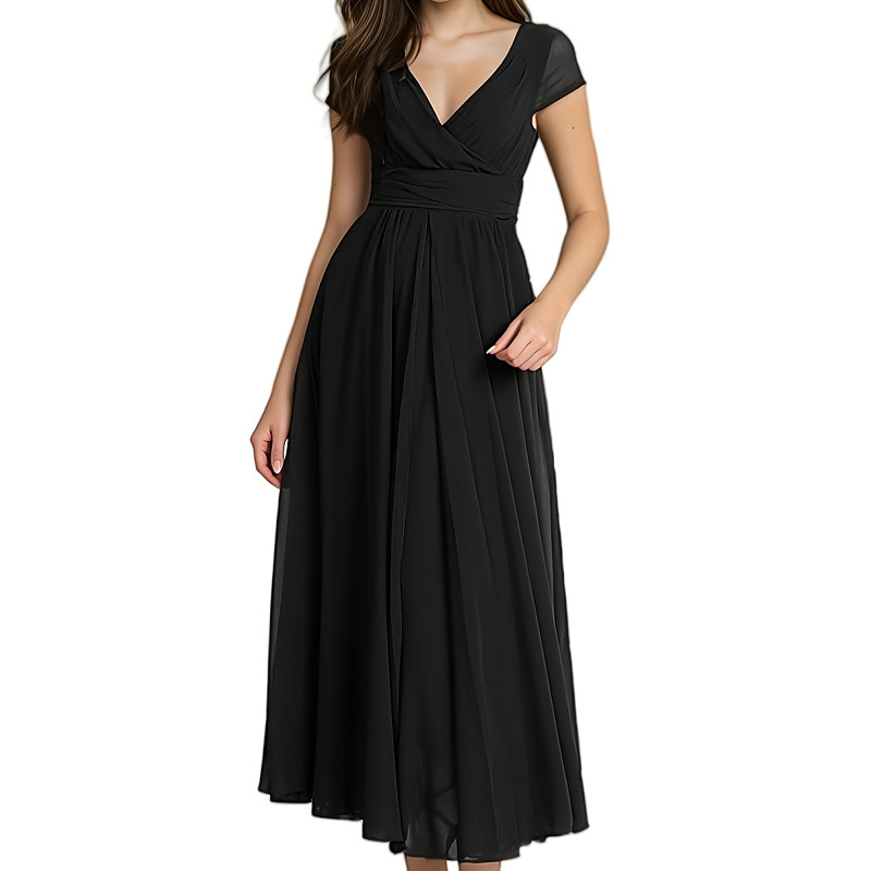 Women's Long Dress Maxi Dress Black Dress Graduation Dress Casual Dress Cocktail Dress Elegant Fashion Modern Daily Date Weekend Regular Fit Plain Short Sleeve V Neck Black Navy Blue Light Blue Summer