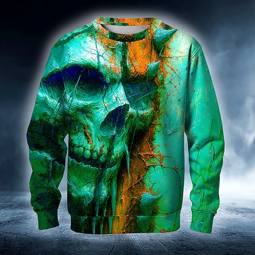 Herren 3D Teufel Sensenmann Pullover Punk Party Gotisch Langarm Rundhalsausschnitt Urlaub Blau Purpur Braun Grün Rundhalsausschnitt 3D Ganzjahres Designer S M L XL XXL XXXL
