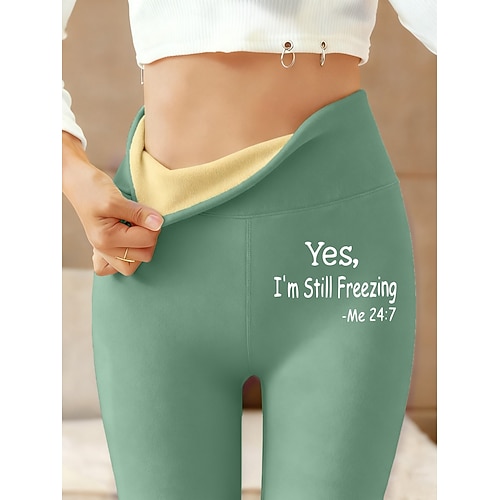 Per donna leggings foderati in pile Leggings Vacanza Vintage Stile Etnico Lunghezza intera Vita Alta Lettera Calore Termico Comodo Confortevole Elasticizzato All'aperto Casual Casuale Nero Rosa Blu