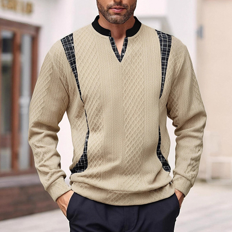Men's Sweatshirt Black White Navy Blue Khaki V Neck Color Block Jacquard Patchwork Sports Outdoor Daily Holiday Polyester Streetwear Basic Casual Spring Fall Clothing Apparel Hoodies Sweatshirts