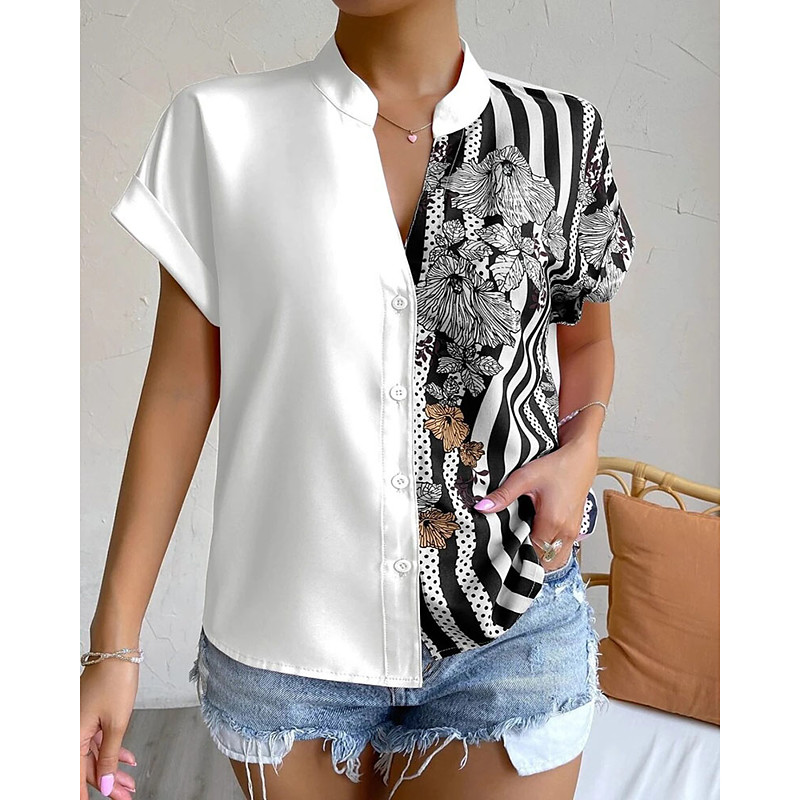 Women's Shirt Blouse Graphic Color Block Vintage Stylish Short Sleeve V Neck Regular Tops Daily Holiday Going out Patchwork Blue Black White Pink Red Summer Spring