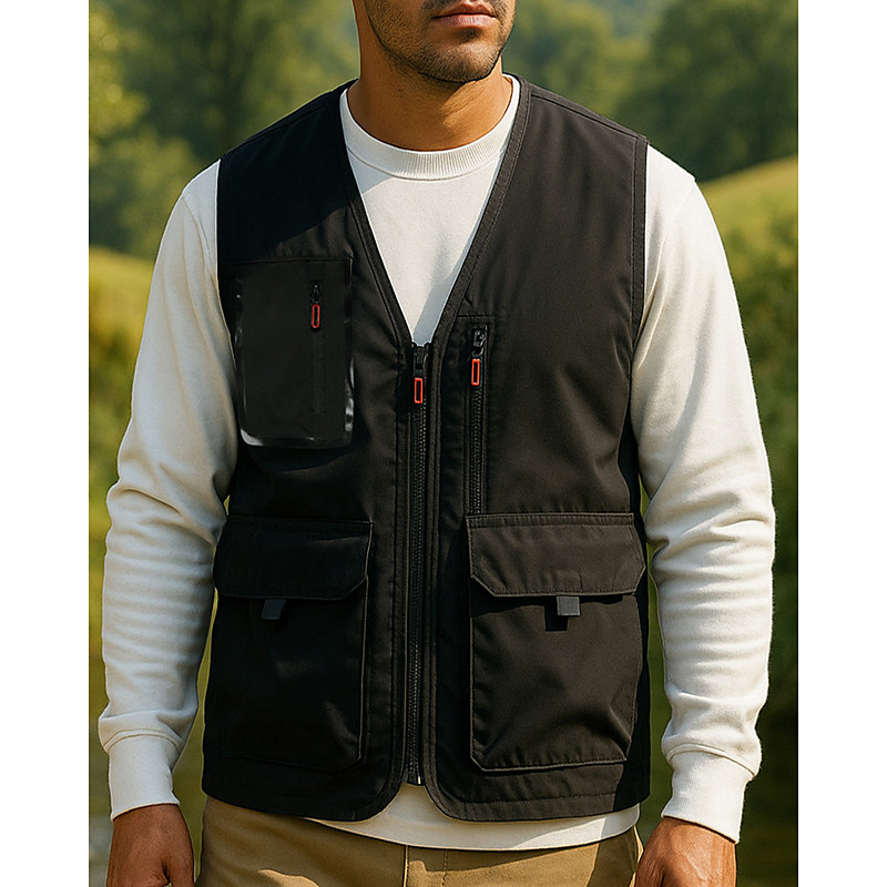Men's Outdoor Vest Vest Fishing Vest Outdoor Daily Fashion Casual Spring Fall Pocket Polyester Comfortable Plain Zipper Stand Collar Regular Fit Black Orange Khaki Army Green Vest