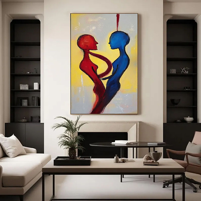 Hand Painted Original Couple lover Oil Painting on Canvas Large oil painting Wall Art Abstract painting Blue Red Painting Custom Painting Living Room Wall Decor