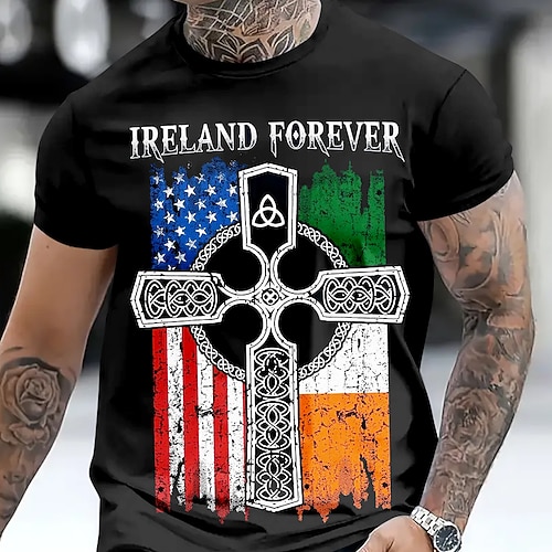 Festa di San Patrizio Per uomo Irlanda Maglietta 100% Cotone Manica Corta Grafico Camicia Nero Maglietta comoda Vacanza Streetwear Abbigliamento di stilista