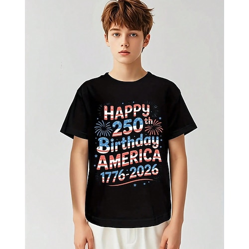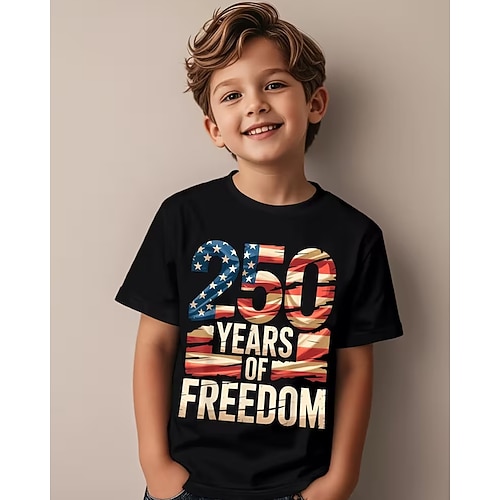 100% Cotone Bambini Ragazzi Nero Bandiera USA 250° anniversario Maglietta Blusa Girocollo Manica Corta All'aperto Abbigliamento Quotidiano Moda Streetwear Designer Stampa Estate Primavera