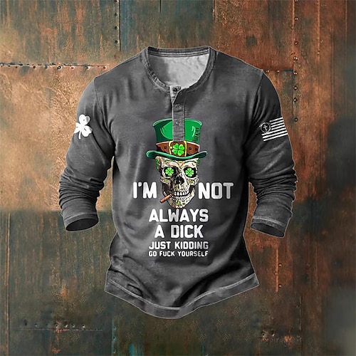 Giorno di San Patrizio San Patrizio Festa di San Patrizio Per uomo Bandiera Teschio Trifoglio Maglietta Maglia Henley Manica Lunga maglietta Stampa 3D Henley Camicia Sport Moda Designer Quotidiano