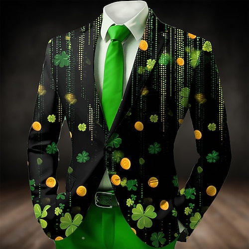 San Patrizio Per uomo Quadrifoglio Giacca blazer Cappotto Di tendenza Confortevole Traspirante Artistico Casual Quotidiano Abbigliamento da sera Festival Stampa 3D Bottoni Multi-tasche Tutte le