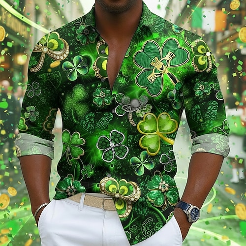 camicia serafino da uomo per la festa di San Patrizio t-shirt grafica trifoglio bandiera nazionale festa di San Patrizio abbigliamento stampa 3D quotidiano stampa abbottonata a maniche lunghe per la