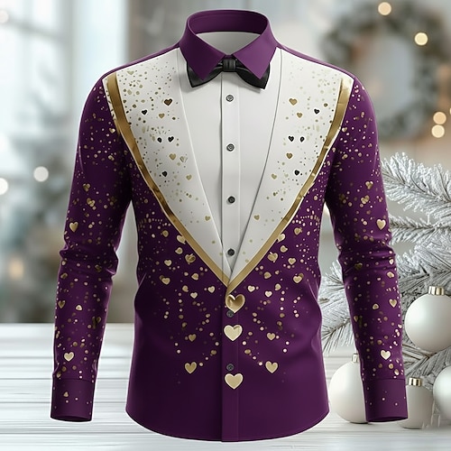 San Valentino Per uomo Romantico A cuore Colletto finto e design del vestito Camicia Camicia con Bottoni Manica Lunga Moda Casual Regalo Ferie Primavera Autunno Collo ripiegato Stampa 3D camicie con