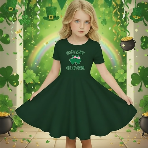 Giorno di San Patrizio ragazze' 3D Grafico Giorno di San Patrizio Abito Manica Corta Stampa 3D Estate Primavera Quotidiano Vacanza Feste Carino Essenziale Casual Bambini 4-12 Anni Vestito Casual