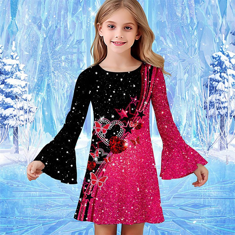 Girls' 3D Cartoon Butterfly Dress Long Sleeve 3D Print Fall Winter Vacation Sports Outdoor Daily Cute Casual Beautiful Kids 3-12 Years Casual Dress A Line Dress Above Knee Regular Fit