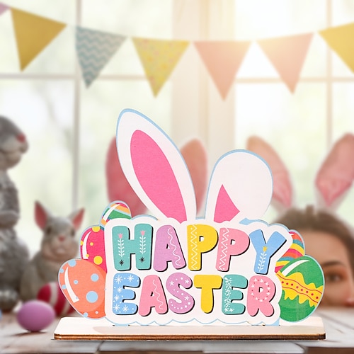 decorazioni pasquali in legno con lettere, statuine in legno stampate a forma di coniglietto pasquale, decorazioni primaverili, perfette per decorazioni stagionali e decorazioni a tema pasquale