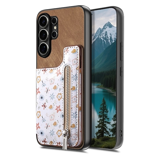 Handy Hülle Handyhüllen Für Samsung Galaxy S26 S25 S24 Ultra Plus S24 FE A37 A57 A56 A36 A55 A35 A25 A15 5G Brieftaschenhülle Flip-Cover Reisverschluss mit Trageriemen Mit Handgelenkschlaufe Baum