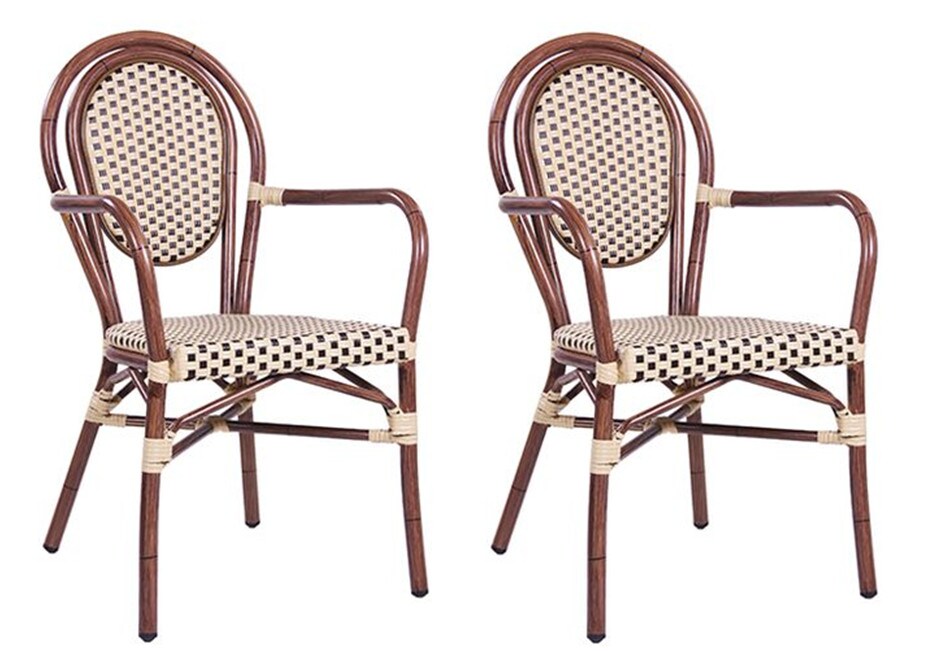 pemora 2-er Set Bistrostuhl Outdoor-Stuhl Terrassenstuhl Balkonstuhl Armlehnstuhl BAMBU AL Bambusoptik beige/braun