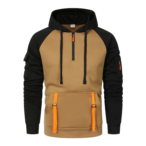 Per uomo Felpa con cappuccio Felpa con cappuccio e zip corta Felpa con cappuccio in pile Felpa con cappuccio tattica Nero Cachi Grigio scuro Con Cappuccio Semplice Patchwork Cerniera Blocco di colore