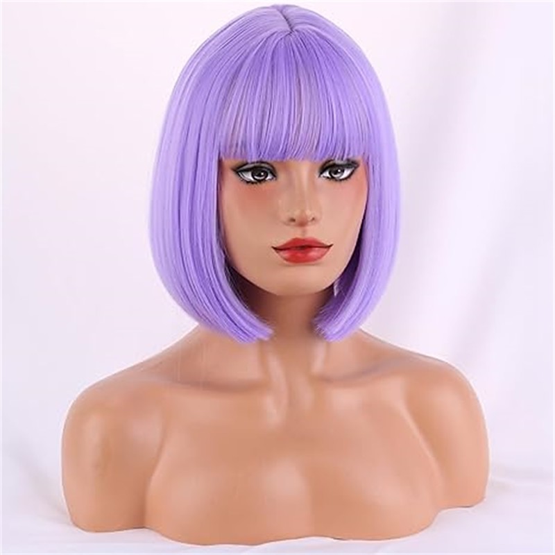 Carnival Wig Black Blue Purple Straight Bob Short Synthetic Festival Wig Mardi Gras Parade Cosplay Costume Hair for Women