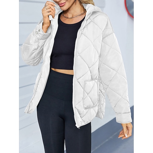 Per donna Cappotto Invernale Confortevole Traspirante Tasca Casual Semplice Vacanza Streetwear Casuale Abbigliamento quotidiano Cerniera Regolare Con Cappuccio Vestibilità comoda Manica Lunga