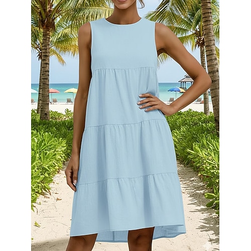 Per donna Mini Abito Abito a Tubino Abito Estivo Casual Quotidiano Vestibilità comoda Semplice Senza Maniche Girocollo Blu Estate