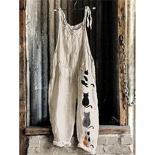 Per donna Salopette Attivo Floreale Senza Maniche Coulisse con tasca Vacanza Streetwear Vestibilità comoda Blu marino Blu Reale Cachi Estate