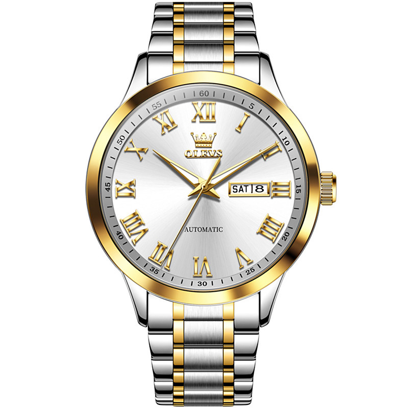 OLEVS Men Mechanical Watch Stainless Steel Waterproof Dual Calendar Luxury Business Automatic Mechanical Watches 7075
