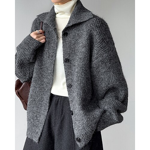 Per donna Felpa Cardigan Moda Streetwear Casual Tinta unica Dolcevita Lavorato a maglia Manica Lunga Top Regolari Maglia Quotidiano Ferie Uscire Grigio chiaro Grigio scuro Autunno Inverno