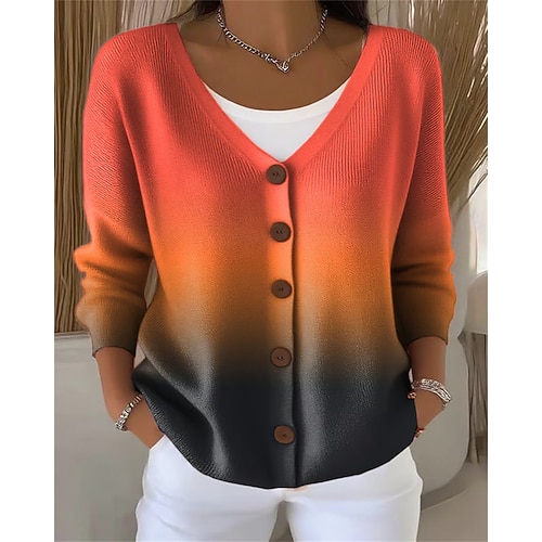 Per donna Felpa Cardigan Elegante Vintage Moda Tinta unica Floreale Grafico Scollo a V Patchwork Bottoni Lavorato a maglia Manica Lunga Top Regolari Maglia All'aperto Casa Quotidiano Blu Rosso