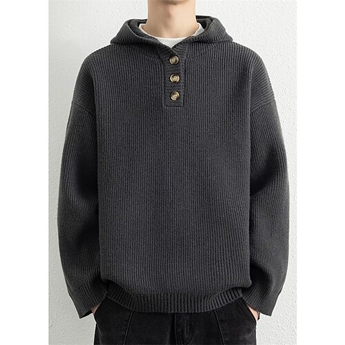 Per uomo Felpa Maglione Maglione con cappuccio A Coste Maglia Top Regolari Cardigan con Bottoni Lavorato a maglia Tinta unica Con Cappuccio Maglieria Contemporaneo Casuale Abbigliamento quotidiano