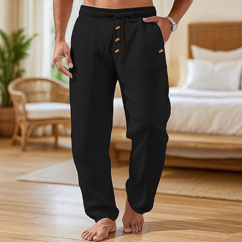 Per uomo Pantaloni di Lino Pantaloni Pantaloni Estivi Pantaloni Larghi Pantaloni da Spiaggia Coulisse Elastico in vita Bottoni Semplice Comodità Traspirante Lunghezza intera Casa Casuale Quotidiano