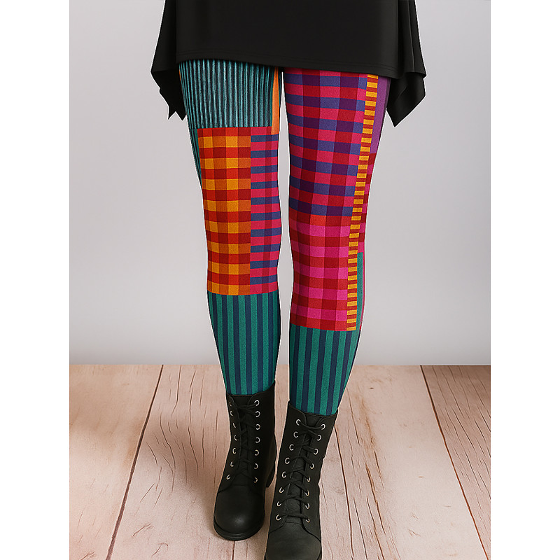 Women's Leggings Vacation Vintage Ethnic Style Ankle-Length High Waist Graphic Plaid Checkered Abstract 3D Print Quick Dry Breathability Soft Stretchy Outdoor Home Causal Yellow Red Gray Fall Regular