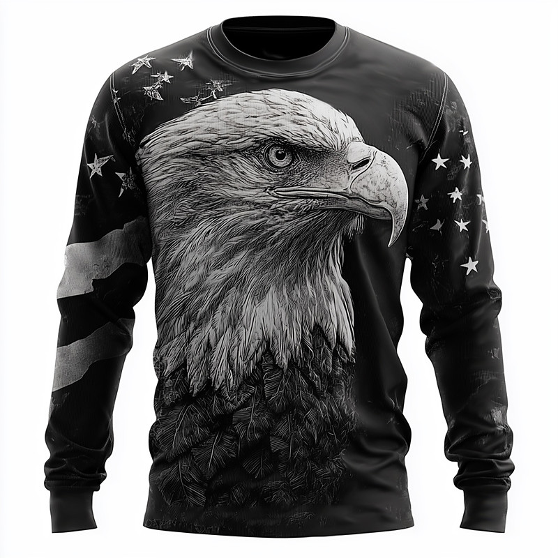 US America 250 Year Anniversary Men's Optical Illusion American US Flag Eagle T Shirt Long Sleeve T shirt 3D Print Crew Neck Shirt Fashion Exaggerated 3D Street Daily Black Gray Summer Spring