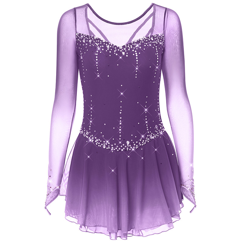 Figure Skating Dress Women's Girls' Ice Skating Dress Purple Gradient Figure Skating Skirt High Elasticity Training Competition Skating Wear Classic Crystal / Rhinestone Long Sleeve Ice Skating Figure Skating