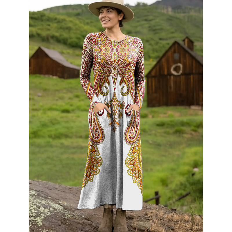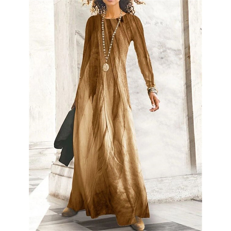 Women's Maxi Dress Vintage Bohemian A Line Dress Crew Neck Long Sleeve Casual Winter Dress Shift Dress Fashion Modern Mature Outdoor Daily Date Regular Fit Ombre Yellow Blue Purple Khaki Fall Winter