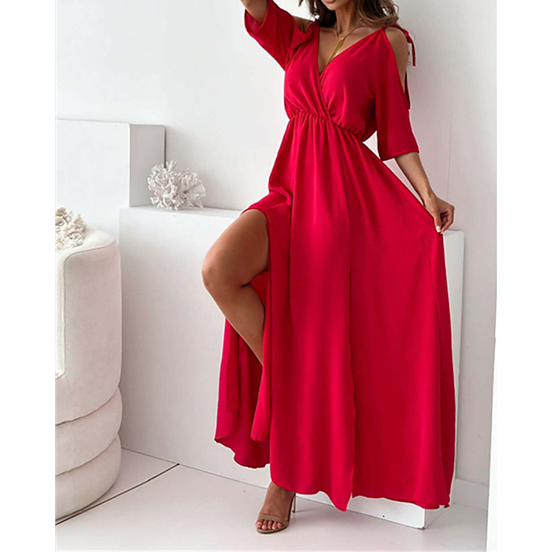 Women's Long Dress Maxi Dress Party Dress Casual Dress Swing Dress Modern Elegant Dress Daily Wedding Guest Date Slim Pure Color Short Sleeve V Neck Blue Black White Yellow Summer Spring