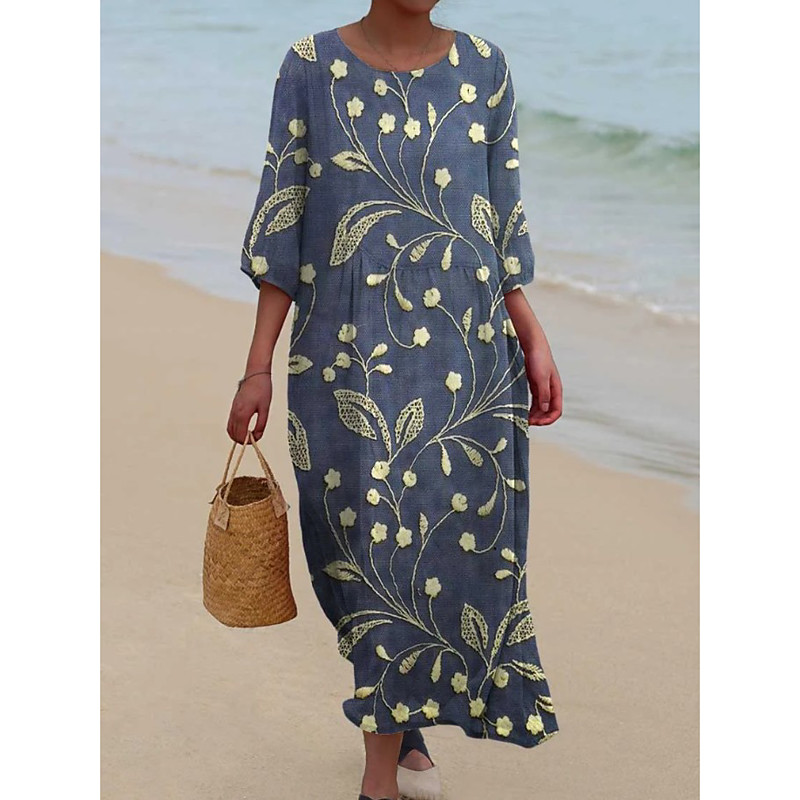 Women's Long Dress Maxi Dress Casual Dress Summer Dress Boho Dress Stylish Casual Vacation Daily Date Regular Fit Geometric 3/4 Length Sleeve Crew Neck White Navy Blue Green Summer