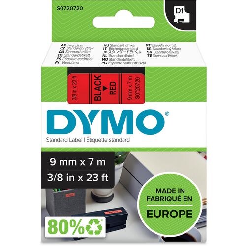 DYMO D1 märktejp standard 19mm, svart på rött, 7m rulle (S0720870)