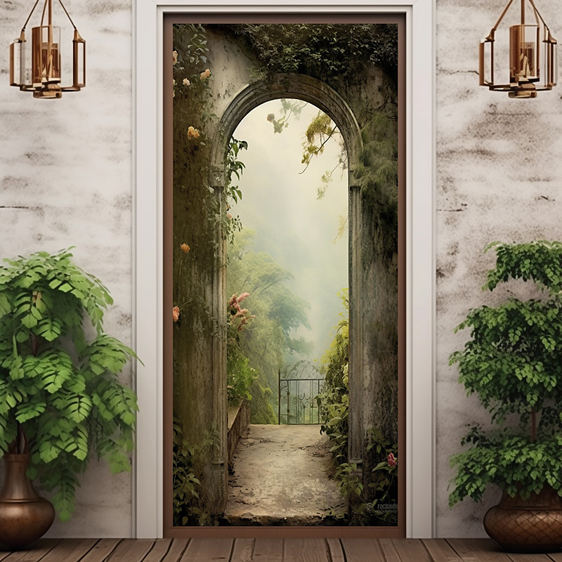 European Porch Door Covers Mural Decor Door Tapestry Door Curtain Decoration Backdrop Door Banner Removable for Front Door Indoor Outdoor Home Room Decoration Farmhouse Decor Supplies