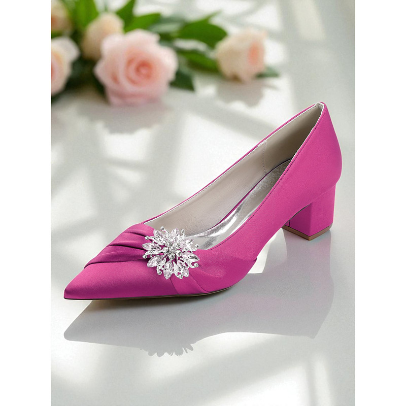 Women's Pink Satin Slingback Heels, Rhinestone Embellished Pointed Toe Kitten Heels for Christmas Parties Holiday Celebrations