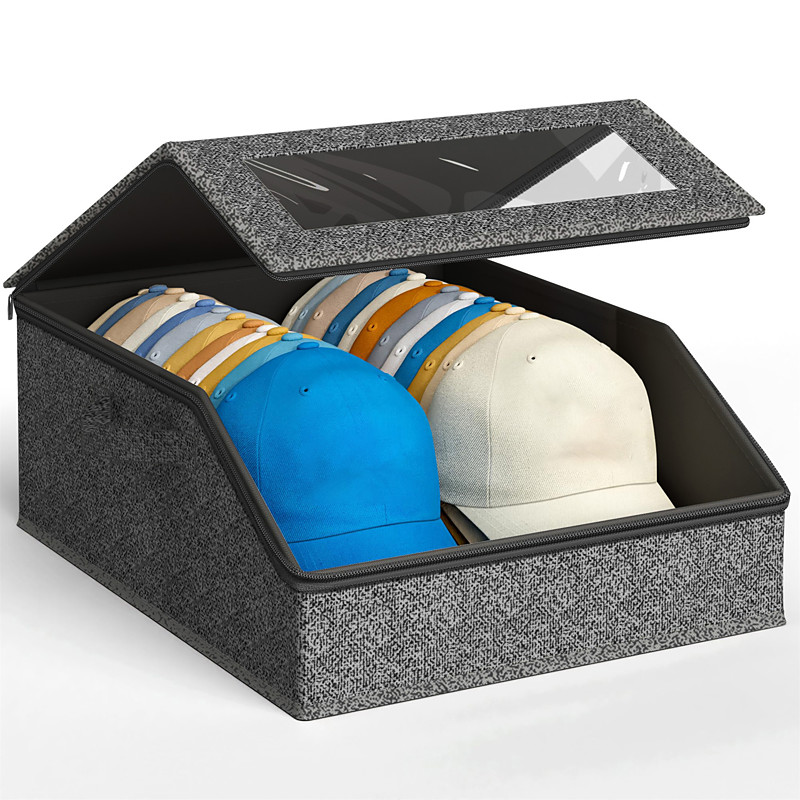 1/2 Large Hat Storage Box Can Accommodate 24 Baseball Caps Clothes Bed Sheets And Pants. Pvc Visible Lid With Zipper Closure For Dustproof Design