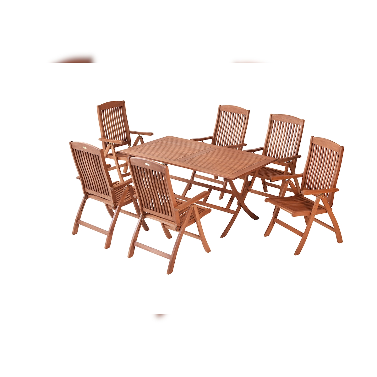 Merxx Maracaibo Set 7tlg., 6 Klappsessel, Klapptisch 160 x 90 cm, Eukalyptus
