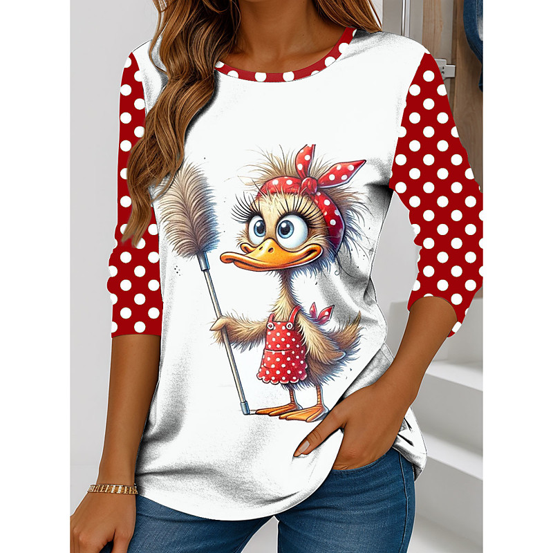Women's T Shirt Graphic Cartoon Polka Dot Vintage Stylish Classic Long Sleeve Crew Neck Regular Tops Daily Print Red Blue Purple Green Spring Fall Winter